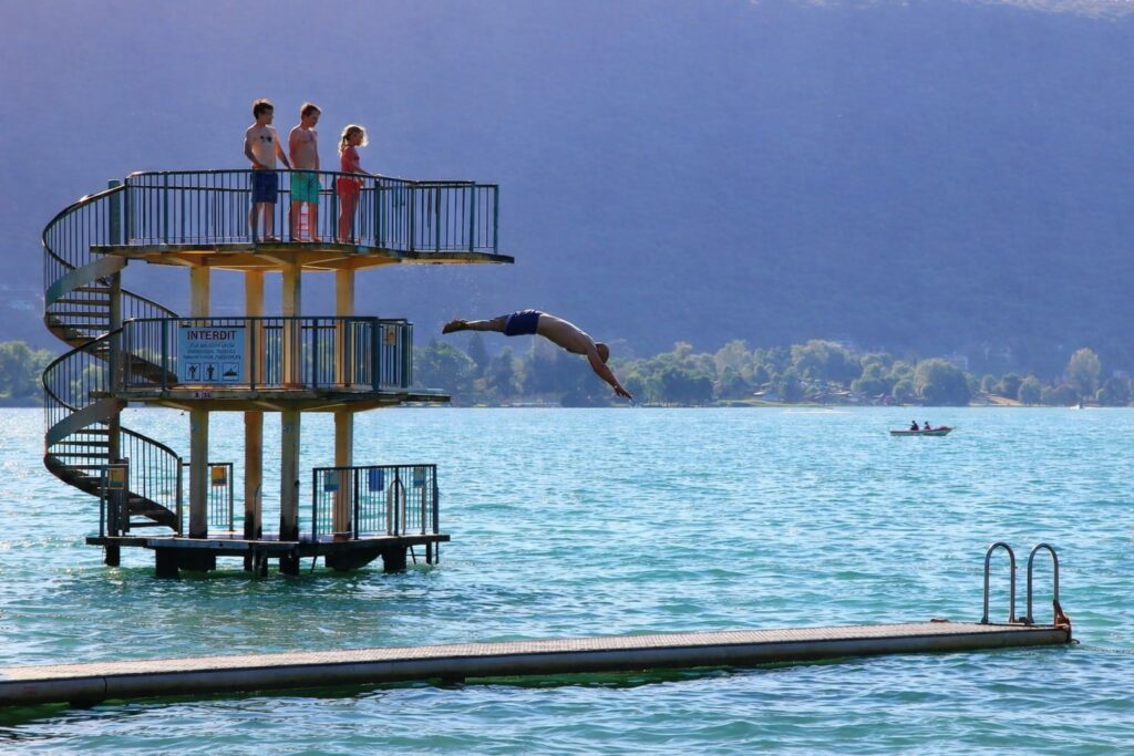 Parmi les plages les plus connues du lac d’Annecy figurent la plage de Saint-Jorioz, la plage d’Annecy et la plage de Talloires. Ces plages permettent de profiter de la baignade dans un cadre naturel exceptionnel avec vue sur les montagnes.